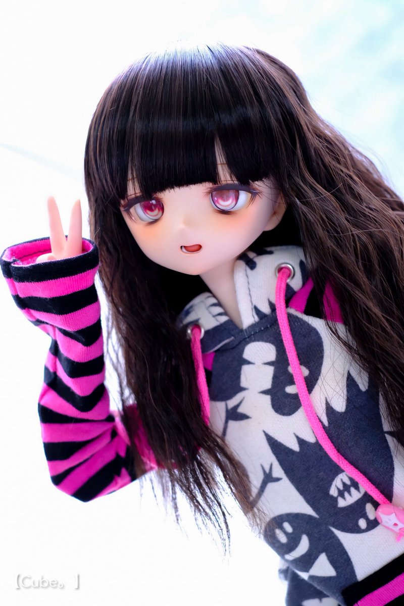 おうち探し中のDDH-01ちゃん💓 へらぁっと笑う病みかわ系女子です♥️💊(◜ ◡ ◝ )︎ クマ気味のジト目に怪しく光るアイがよく似合いますね😎 この子も輪郭を削っているので、煽りから見てもしっかりシャープなお顔立ちになってます🎵 #きゅべっ子 #くろすらぼのふく #ドルフィードリーム