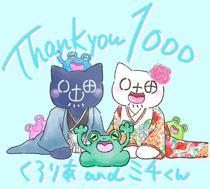 1000人以上の方々にくろりあandミチくんを見ていただいています。いつもいいね、コメント、リツイート、本当にありがとうございます。ぜひ、これからもよろしくお願いします。 #くろりあandミチくん #イラスト #illustration #ゆるいイラスト