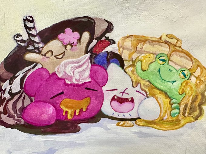 締め切りなんて言い方しましたが、あの日1番描きたい絵でした🥰 好きなものになりきる4人。 #くろりあandミチくん #kurorias #よだれ組 #イラスト #アナログイラスト twitter.com/momoko_kanade/…
