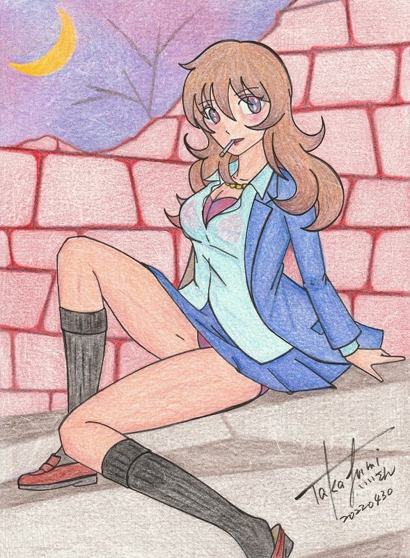 山城優真ちゃん (2022年4月30日完成) pixivのお友達 尾州屋与之助さんの看板娘ちゃんをお借りしました #作品 #色鉛筆 #描かせていただきました #山城優真 #女子高生 #くわえタバコ #パンチラ #ブラチラ #制服 #背景ホンキのイッパツ描き #お絵描き好きな人とつながりたい