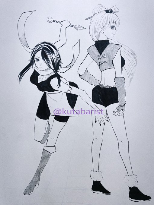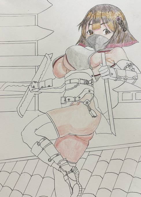 今日の夜間学校成果物🏫🌟 くの一ちゃんズを ノリノリで描いてました😂✍️✨ 小学生の頃こういうの好きだったな… #アナログイラスト #イラスト #illustration #くノ一 #絵描き #絵柄が好みっていう人にフォローされたい