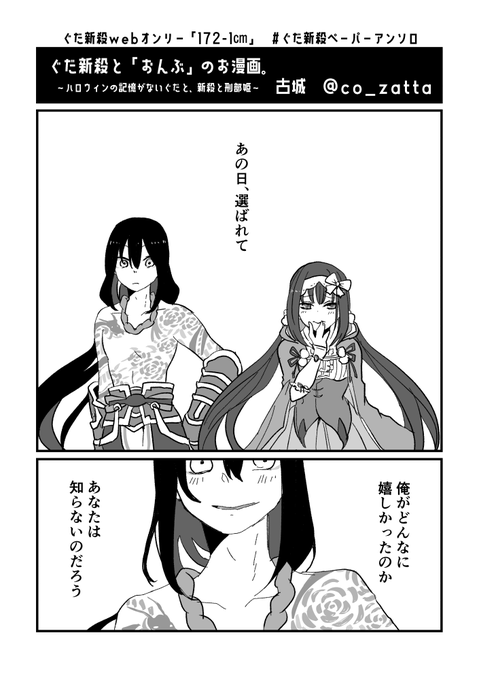 お題【ハロウィン】 ぐだ新殺と「おんぶ」のお漫画。 昨日のペーパーでした。印刷してくれた皆さんありがとうございます( ´ ▽ ` )! ハロウィンイベントの記憶がないぐだの話です。 #ぐだ新殺ワンドロワンライ #ぐだ新殺ペーパーアンソロ #マイナス1cmのコイビト