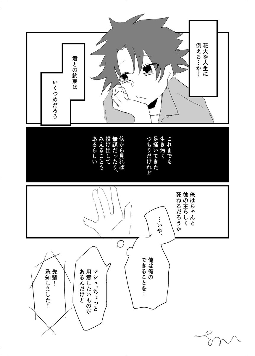 #ぐだ新殺ワンドロワンライ (フライング) お題:従者 その人にとって何が一番幸せかなんて、他人が決めていいことじゃない。 それでもあなたには、幸せであってほしいと思う。 だから、せめて、あなたにとっての善き主でいたい。