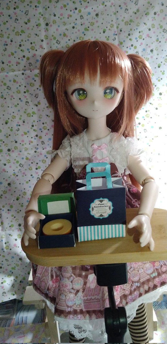 本日ろこもこさんからぐらむアイが届きました。 昨日召喚した子が更に可愛くなりました。 バームクーヘンは召喚時のお土産みたいです。 そしてこのウィッグが難しいです。 少しずつ慣れていきたいです。 #ぐらむアイ #MDDはいいぞ #ドールオーナーさんと繋がりたい