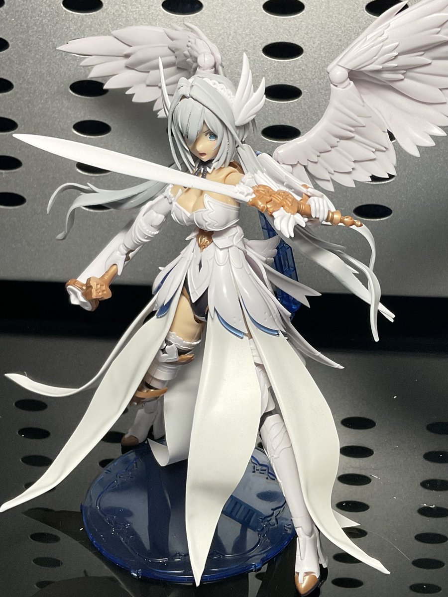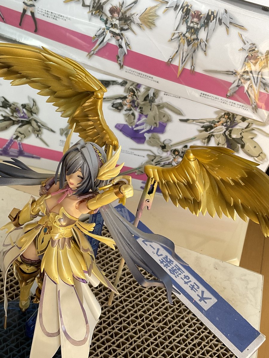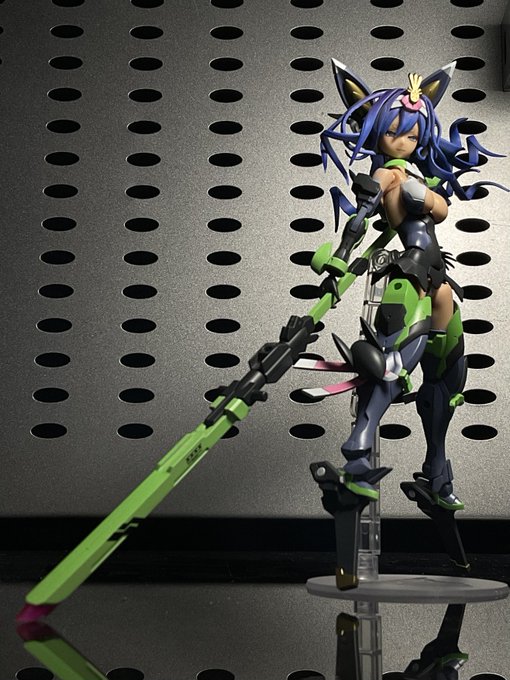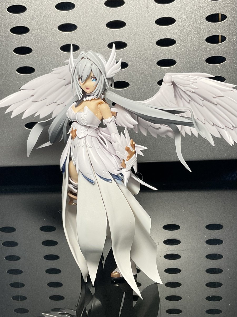 #けせらせらモデリング 考えながら少しづつ塗ってるんで、効率もクソもあったもんじゃないけど、今回最大のポイントである髪色が入りましたよ 思いつきで玉藻マスクも塗り分けてみたけどカッコいいんでないかこれ?