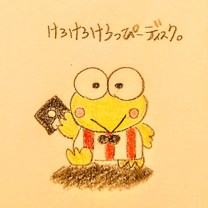 今もあるのかなあ。。。 kero kero keloppydisc... #サンリオ #けろけろけろっぴ #けろけろけろっぴーディスク #イラスト #ギャグ #だじゃれ #みんなで楽しむTwitter展覧会 #sanrio #kerokerokeroppi #floppydisc #illust #pun #joke