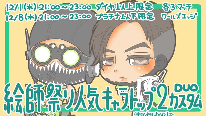 次回【#けろはるカスタム】告知 アビリティ限定カスタム#3 2月2日(水)21:00~22:30(予定) ワールズエッジ3戦 トリオ20チーム募集(先着)@14 参加条件やルール等の詳細は私のチャンネル内「コミュニティ」からご確認ください! youtube.com/channel/UClaze… ☆イラスト:かもめさん様
