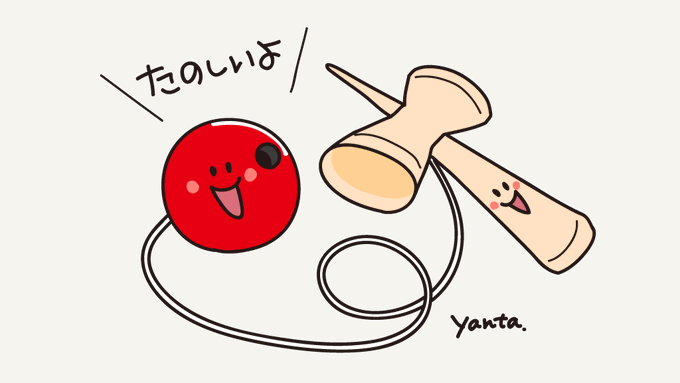 おはようございます😊 今日はけん玉の日📍 けん玉は皿に乗せるくらいしかできない すんこです🤣 独楽はわりとできるんだけどなぁ😅 今日も一日よろしくお願いします✨ #イラスト #けん玉の日 #絵描きさんと繋がりたい