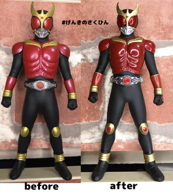 #仮面ライダーソフビシリーズ #仮面ライダークウガ 重塗装 サイズダウンしたとガッカリするべからず! とにかく造型の精度が高いです。 塗装するとより分かりますでしょ! #げんきのさくひん #ニチアサフィギュア改造部 #仮面ライダー #あなたのソフビ紹介 #塗装
