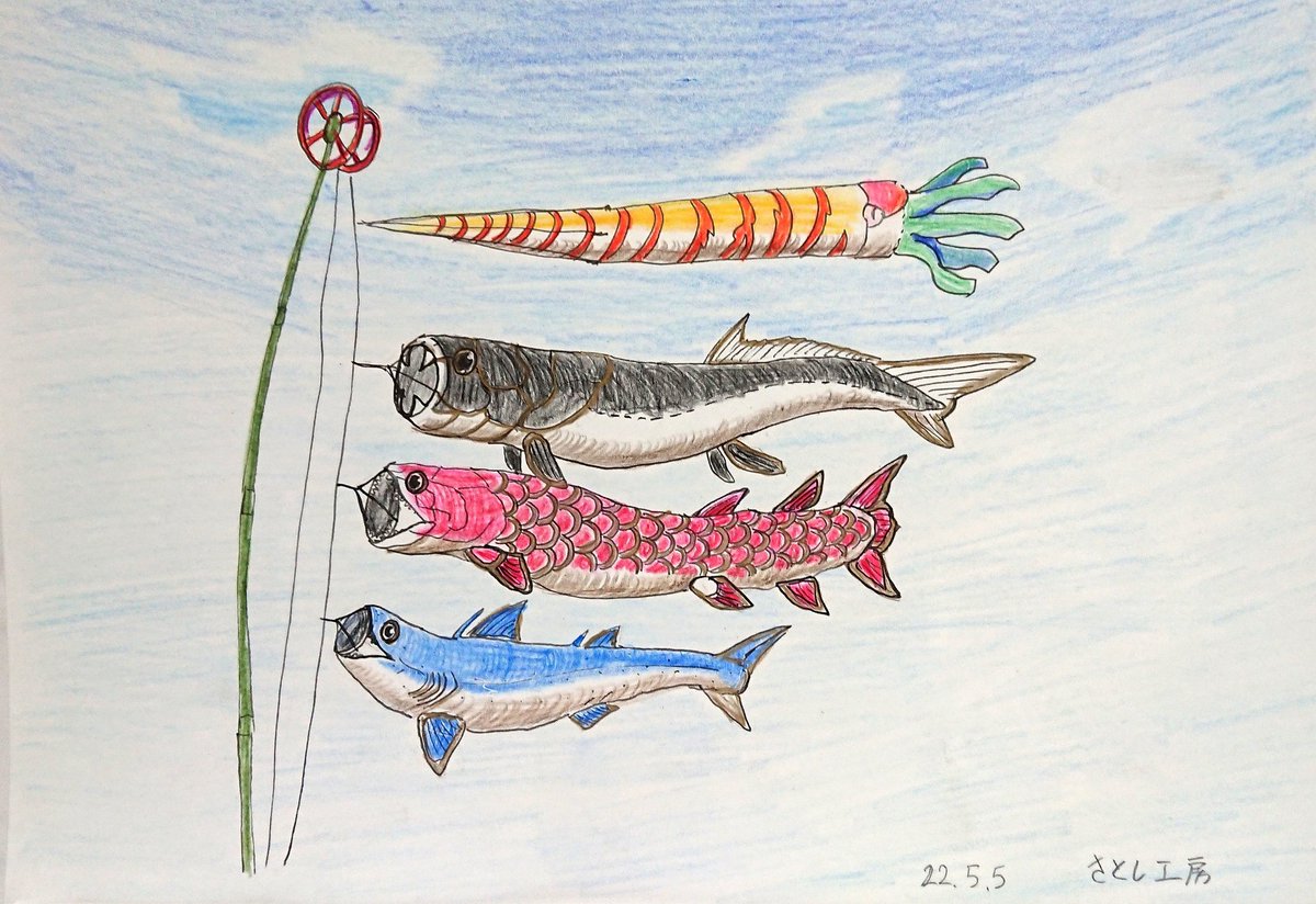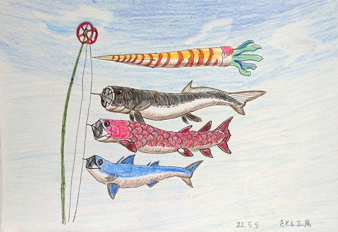 こどもの日ー。 今日、関東方面に戻る予定。 (前回のタネあかし) 秋田から おはようございます。 #こいのぼり #うちの子 #イラスト #私の絵柄が性癖に刺さる人に届いてほしい twitter.com/uuuta_art0628/…