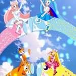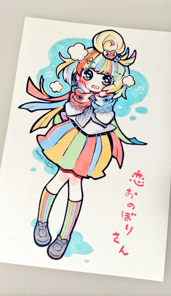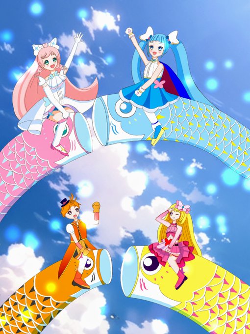 【空に泳ぐやひろプリ鯉】 1日遅れの #子どもの日 絵です! #ひろプリ × #こいのぼり 🎏 (背景の空は自前の写真をAI加工したものです) #MisterJArtworks #ひろがるスカイプリキュア #ゴールデンウィークSNS展覧会2023