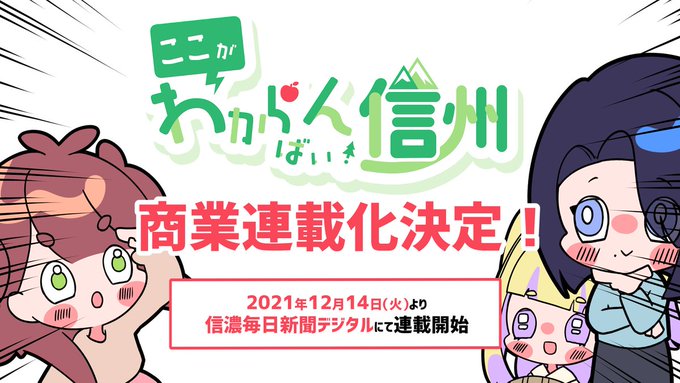 【超重大発表】 #ここがわからんばい信州 \商業連載化決定!!/ 『信濃毎日新聞デジタル』にて、 2021年12月14日(火)より週刊連載開始! これまで読んでくれた読者の皆様の応援のおかげです!本当にありがとうございます! 信毎さんでもここがわからんばい!信州をよろしくお願いいたします😈💕!
