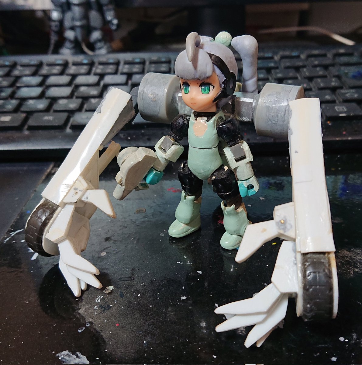 #ここまで作ってて止まってるseries WAVE Ma.K. 1/20 グスタフ。 2012年より9年放置中。 単体としてはできているんですけど、 どういう背景と台がいいか思いつかぬまま… 恥ずかしいんですが、 こうしてツイートすることで 何か思いついたりしないかと。 #マシーネン #マシーネンクリーガー