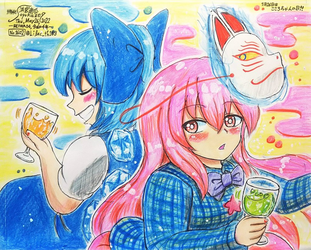 たまには二人で他愛ない世間話でも🍷 +15分 (1時間15分) #チルノ #秦こころ #深夜の真剣お絵描き60分一本勝負 (東方版・1602回目参加・お題フリー) (※12月2日お題) #こころの日 #5月26日はこころの日
