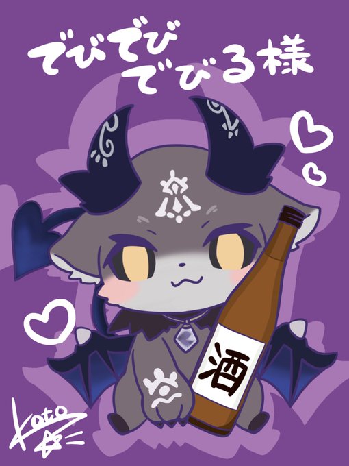 デビ様が喉の調子悪いてツイートしてて心配しとったけど、元気に配信してた❕ 良かった💜*.+゚ また元気にお酒たくさん飲めるように大事大事して下さい❕ #でびるさまにささげるえ #ことのおえかき帳