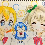 穂乃果「う"う"う"海未ちゃんが…!!!(ち、小さくなってる…)」 ことり「可愛い~💕」 海未「?!?!?!」 ことほのうみ描きました~🌸 海未ちゃんおたおめ💐 マスコットうみちゃんも可愛いよねっ❣️ #園田海未生誕祭2022 #園田海未誕生祭2022 #lovelive #ことほのうみ #イラスト #アナログ絵