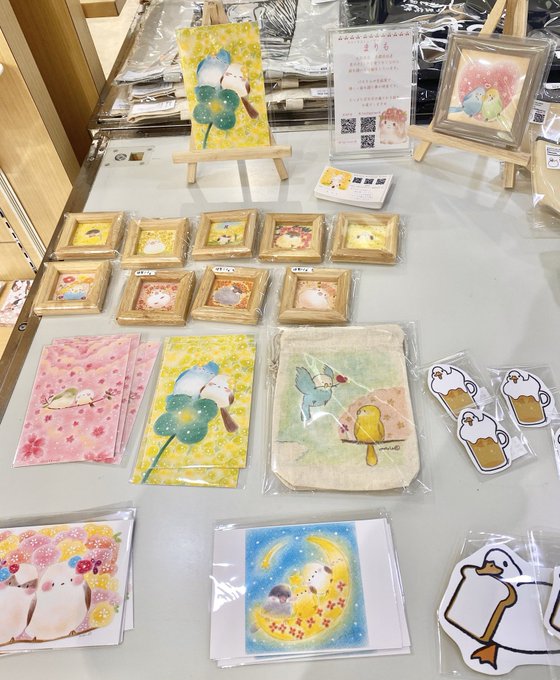 ことりマーケット大阪2日目が始まりました🌸よろしくお願いいたします^^ そして追加分も送りました📮🦜 (少なめになってしまいましたが、💦) 素敵なご縁がありますように🌈 #ことりマーケット大阪 #まりものイラスト