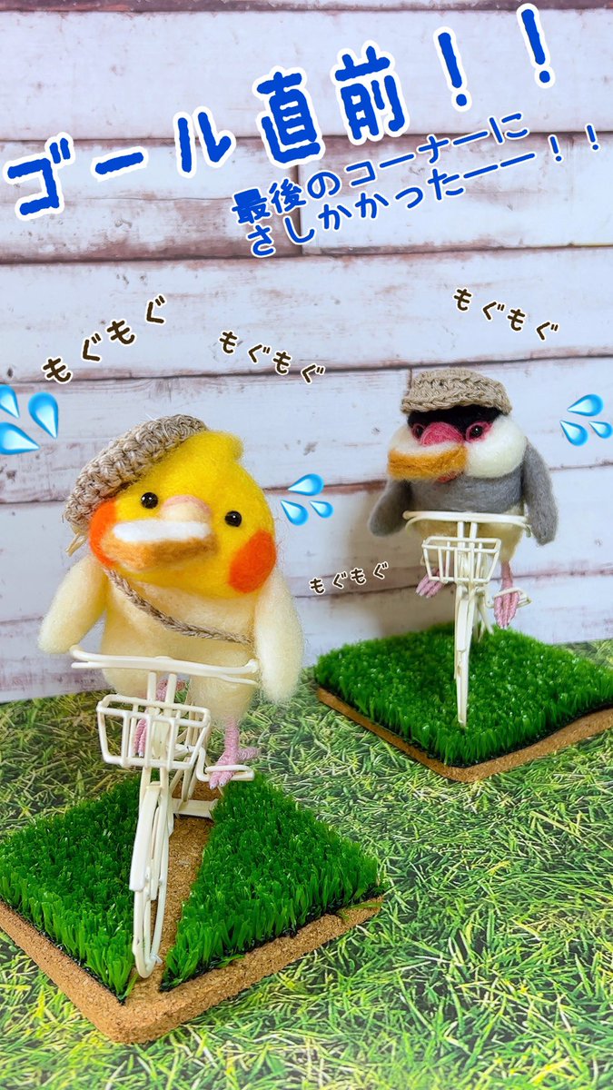 「いっけなーい!チコクチコク!」レース最後のコーナリング直前 Twitterの仕様が縦長になったらしいので縦長に撮ってみました(๑❛ꆚ❛๑) #ことりマーケット大阪 に持っていく子なんだけどパンどうしようかな…… 意外とハマってる? #ハンドメイド #羊毛フェルト