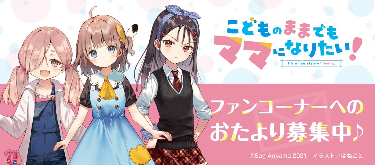 電撃G’sマガジン2022年2月号に『こどものままでもママになりたい!』のページを掲載して頂いております。 ファンコーナーへのおたよりも募集中との事ですので、こちらの投稿フォームよりお気軽に応募してください…!↓ kdq.jp/kodomama #こどママ twitter.com/_kodomama/stat…