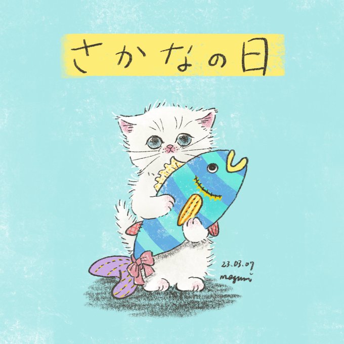 3月7日は「さかなの日」 今年に入ってから時間立つの早すぎ問題でもう3月なんて信じられないです💧体感的には今年入ってまだ3週間くらいです🌙☀怖い💦 #絵本 #挿絵 #イラスト好きな人と繋がりたい #イラスト #猫イラスト #イラストレーション #落書き #catillustration #こねこ #白猫