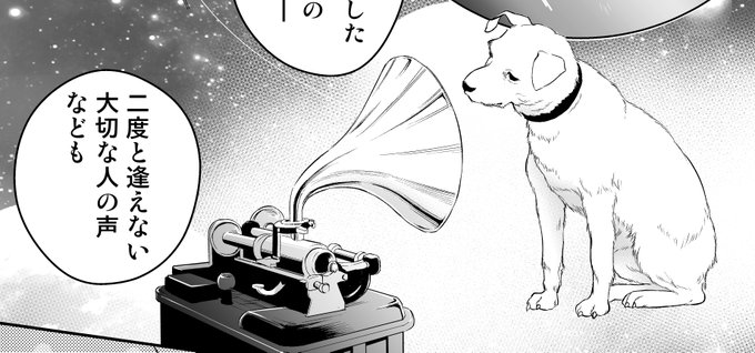 これ、うちのアシさんが知らなかったので蛇足ながら説明すると、 有名なこの蓄音機の前の犬が聴いているのは、亡くなったご主人の声なんです だからHMV(His Master's Voice) 動物好きが百発百中で泣くネタです #このはな綺譚 twitter.com/fuwaryozo/stat…