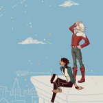 #このタグを見たら自分の兎虎をTLに捧げる 1枚めは昔、andさん(@and_tb_px)のご本の表紙に描かせていただいたもの、2枚目はまりてさん(@Mariethe95 )のご本に描かせていただいてヘッダーにもしているものの全体図です。