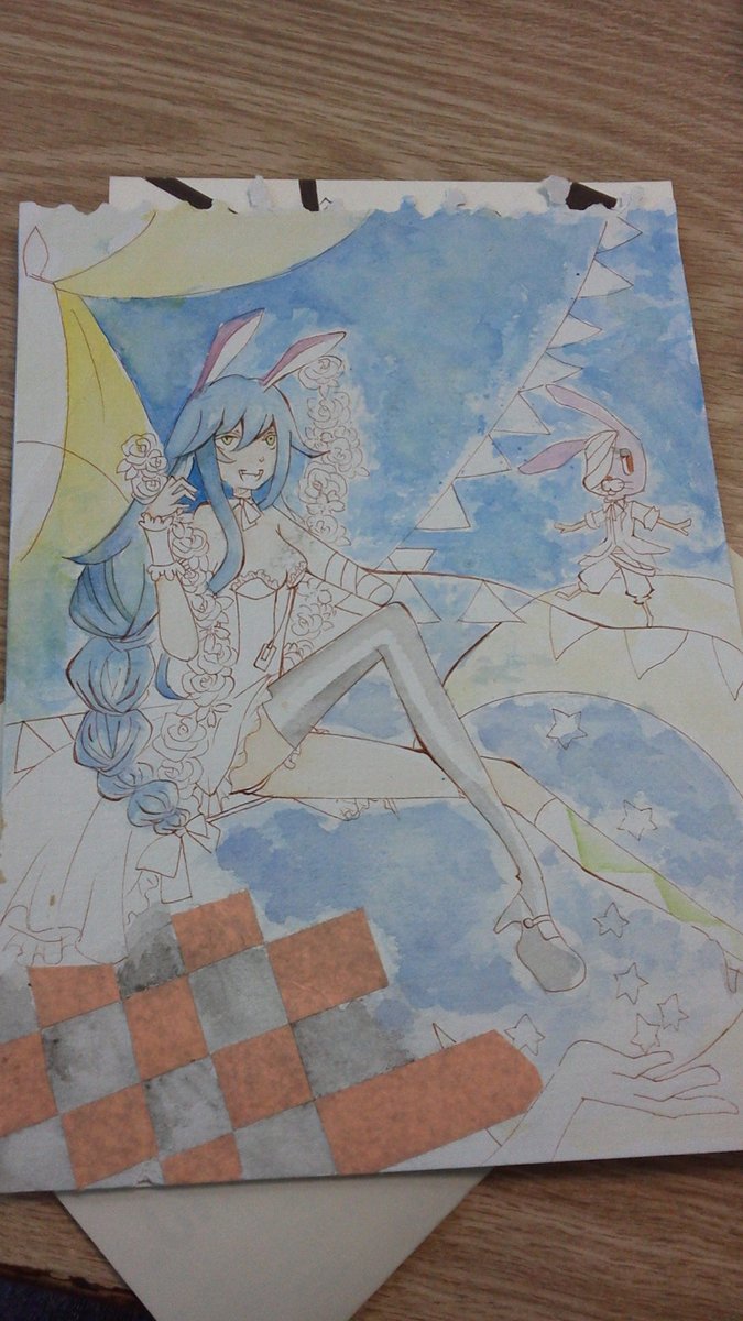 #このタグを見た人は初描きと現在の絵を載せる 本当に最初のは実家だし高校のは引越しの際葬ったから唯一残ってた水彩の初めを ←10数年前 現在3枚目→ 割と前のがいいような でも成長してはいるかな(・ω・ = ・ω・) (ちなみに今の旦那と遠距離の時にクリプレでホルベインもらったのがきっかけ)