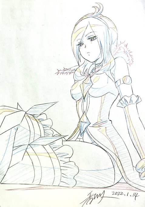 1月14日と11月4日は #イースの日 という事で…また今年も思い出したので😅最新版のイース様を! と言いつつ原画みたいなただの鉛筆画ですが…気が向いたらまた色着けてみよう #このタグを見た人は攻撃力高そうな持ってる画像を貼る …いや🤔攻撃力は高くないか🤔いやイース様の攻撃力は高いはず!