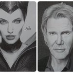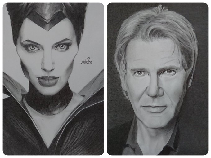 #このタグを見た人は真正面の画像を貼る おはようございます☔🌀 台風の影響はどうでしょうか こちらは昨夜から荒れ模様です 進路にあたっている地域の方の被害が出ませんように🙏 #鉛筆画 #シャーペン画 #模写 #過去絵 #ハリソン・フォード #アンジェリーナ・ジョリー