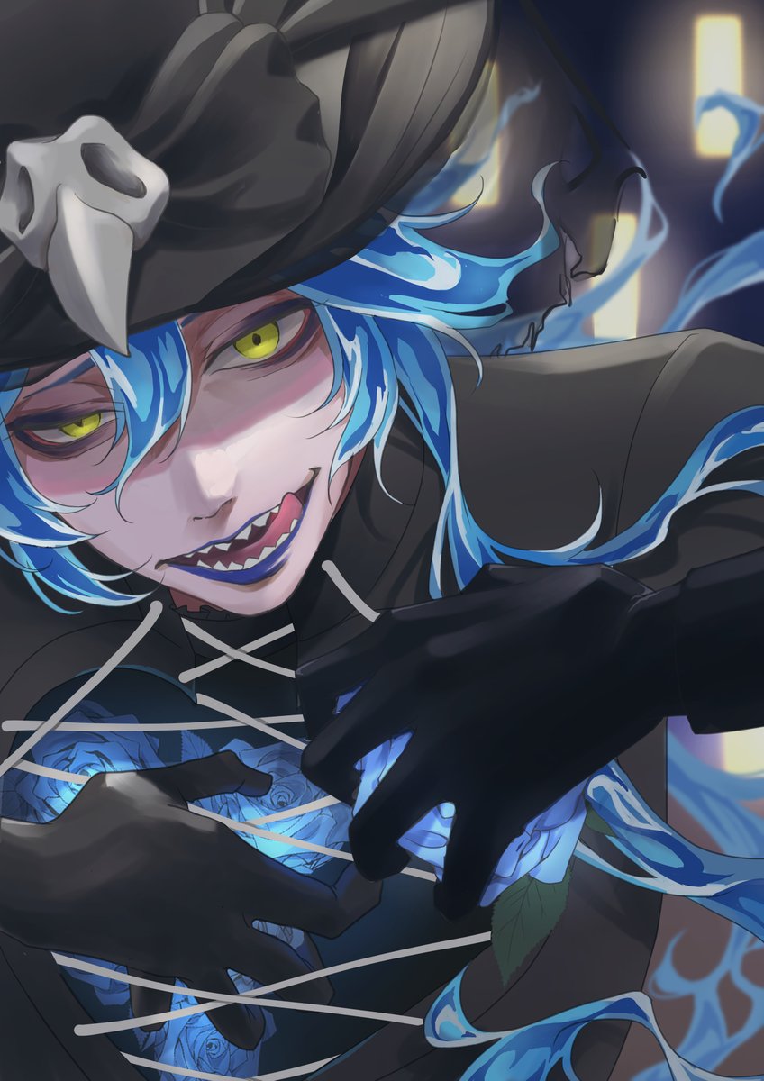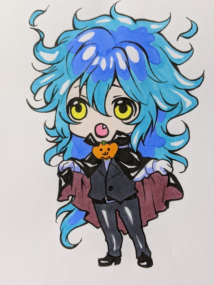 「僕の心臓(ハート)受け取って」って迫ってくるタイプのゴースト😂 去年描いたハーツラビュル衣装のイデアくんお気に入りなのでリメイクした💀🍭💙ほんと似合う〜 #このタグを見た人は自分のイデア・シュラウドを見せる #twstファンアート twitter.com/omanu_san/stat…