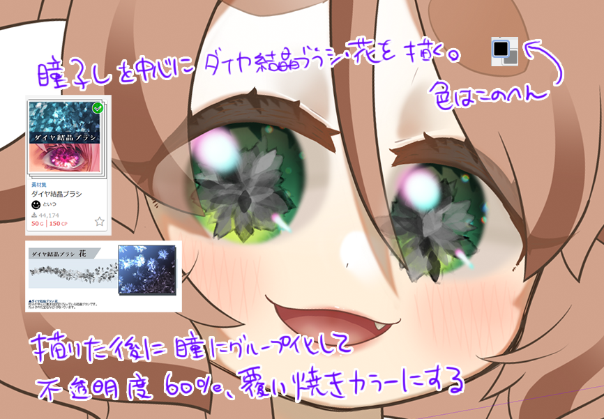 最近瞳を塗るのに使ってるこのブラシが優秀なのでオススメさせてください…ちょっと物足りない瞳が、このダイヤ結晶ブラシでキラキラになるたぬ!! ダイヤ結晶ブラシ by といつ assets.clip-studio.com/ja-jp/detail?i… #clipstudio #このブラシがすごい でiPadお絵描きセットを当てよう clipstudio.net/promotion/brush