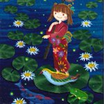 ステンドグラス風アート 「浴衣のファッションショー」その① amy.tokyo/stained-glass-… #この青いいねと君が言ったからいつも青い記念日 #夏の創作クラスタフォロー祭り #イラスト好きな人と繋がりたい