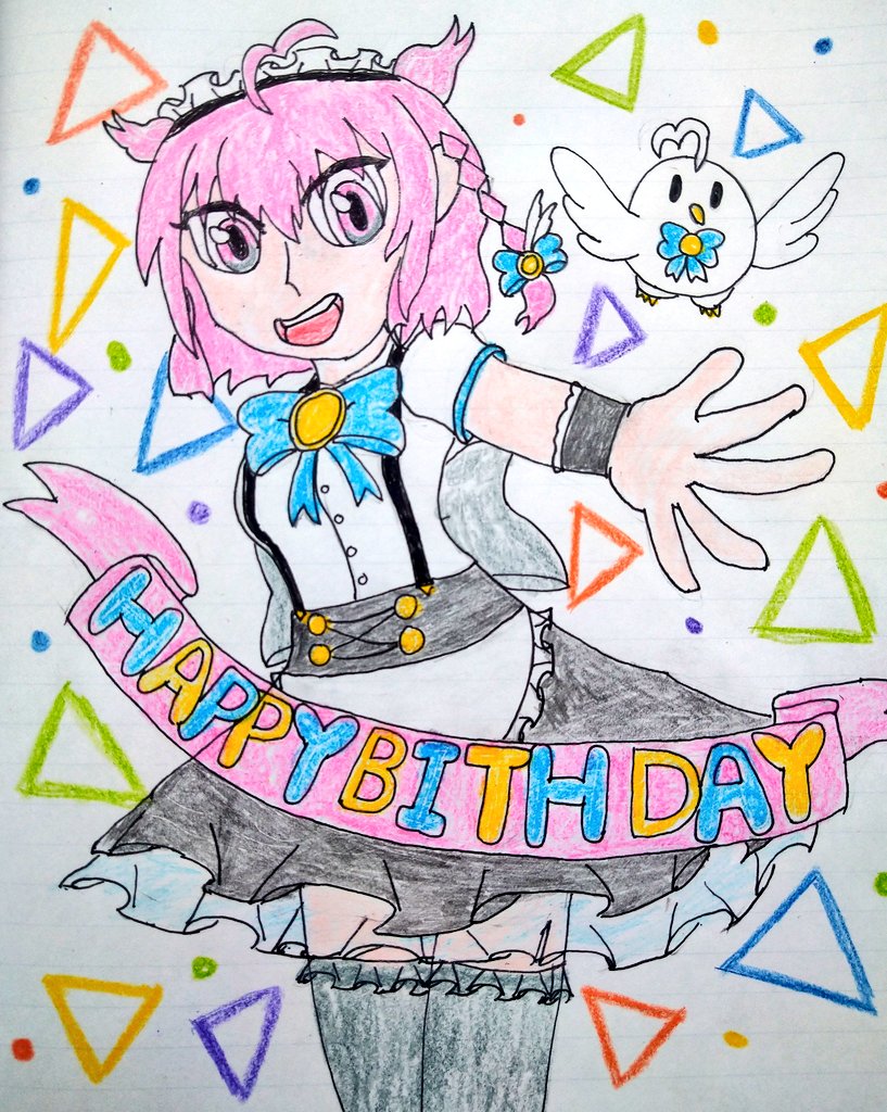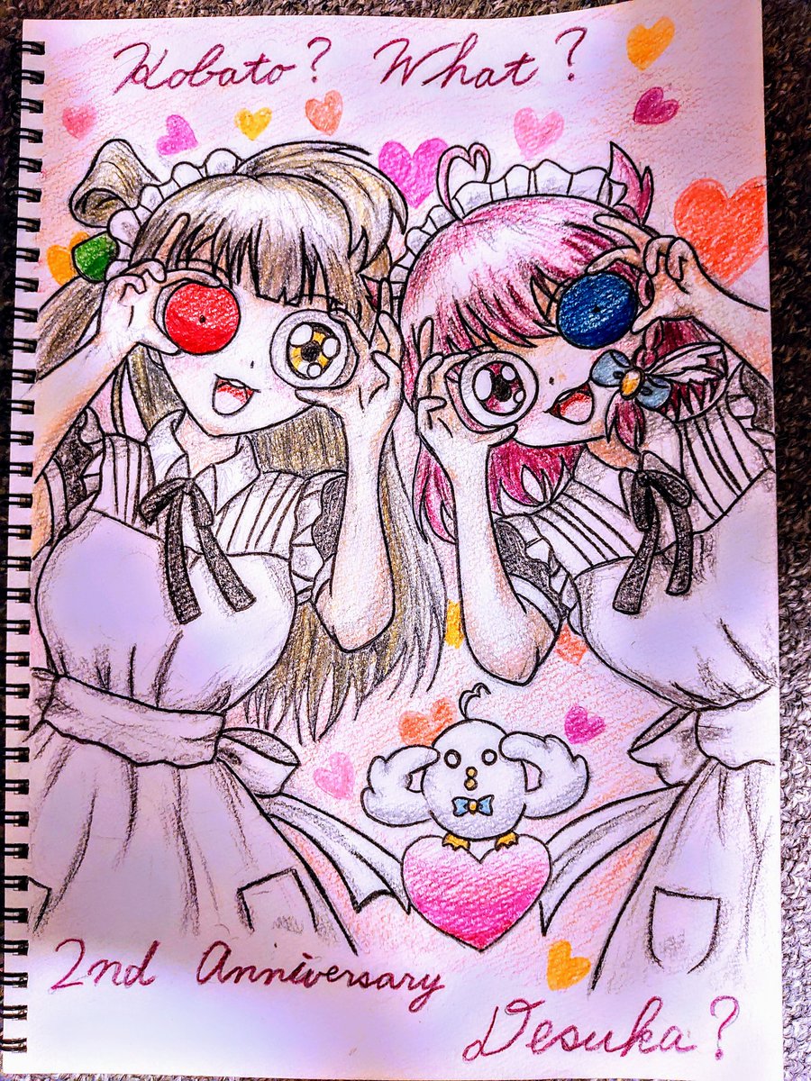 ばとちゃん2周年おめでとう✨🎉🎉 歌とトークにいつも元気貰ってます😇 オリソンも出来て、どんどん進化していくばとちゃんを見ているのがパパの幸せです🎶 夢に向かって一歩ずつ着実に! P.S.メイド繋がりで、ことりちゃんとコラボしてみました! #こばとに届け #こばとぎゃらりー #小鳥遊こばと2周年