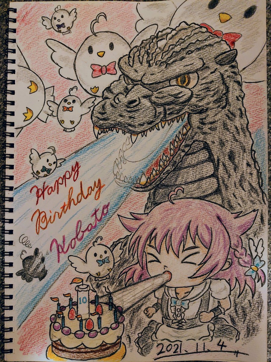 ばとちゃん誕生日おめでとう🎂🎉 今日中に間に合った🎨💦 ベリーメ◯ン、ちち◯げ、SAN値ピンチするハト丸たち…色々盛り込みすぎた(笑) いつも言ってるように体を大切に、みんなで一緒に夢を掴もう✨ #こばとぎゃらりー #こばとに届け #小鳥遊こばと生誕祭2022