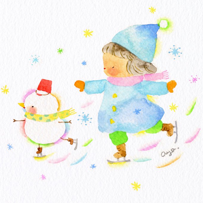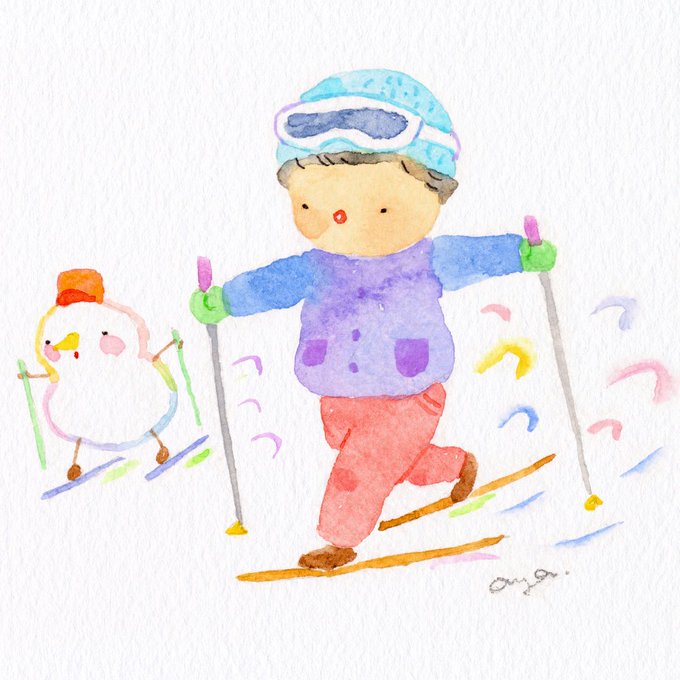 学校の授業でもクロカンがはじまりました~🎿⛄♪シャカシャカ~ #絵 #水彩画 #絵 #水彩 #透明水彩 #イラスト #drawing #illustration #手描きイラスト #アナログイラスト #watercolor #こばやしあや #painthing #お絵かき #watercolorartist #watercolorillustration #watercolorart #クロカン