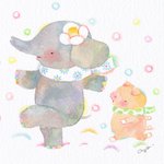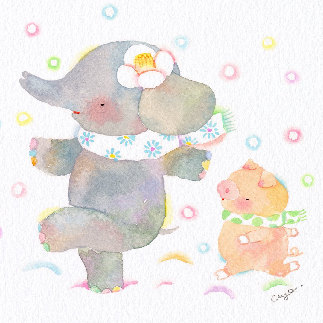 雪の日のお散歩♪ おともだちとなら楽しいな♪🐘🐷⛄❄✨✨ #絵 #水彩画 #絵 #水彩 #透明水彩 #イラスト #drawing #illustration #手描きイラスト #アナログイラスト #watercolor #こばやしあや #painthing #お絵かき #watercolorartist #watercolorart #ぞう #ぶたさん #雪 #マフラー #sunou