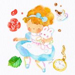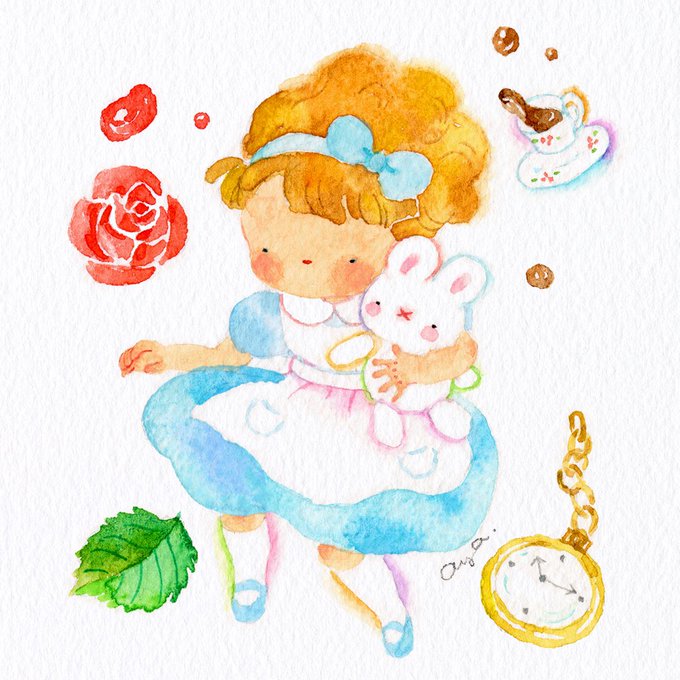 アリスを描いてみました♪🌹☕🐰♬ ふんわりとうかぶ✨ #絵 #水彩画 #絵 #水彩 #透明水彩 #イラスト #drawing #illustration #手描きイラスト #アナログイラスト #watercolor #こばやしあや #painthing #watercolorart #アリス #お茶 #バラ
