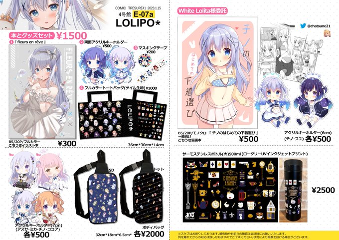 ちまめーちょお品書きです✨ 既刊2冊しかないのとかもありますw 直筆色紙は最初お一人様5点までで、12時からは制限なしでお求めいただけます☺️ グッズは写真以外にもたくさんあります✨ ぜひゆっくりお手に取って見て見てください✨ サークルメンバー勢揃いします❣️ #こみトレ41 twitter.com/yuukichima/sta…