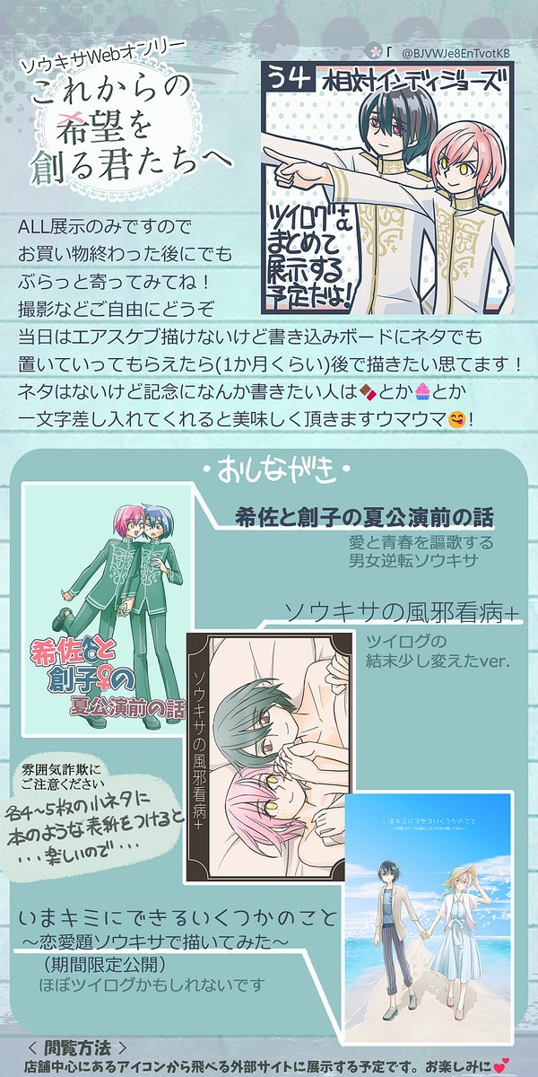 【サークル情報変更〆日でした🌟】 遅くなってしまいましたが、14日はサークルカットなどの情報〆切日でした!更新ありがとうございました。 以下の画像で確定といたします。本部で公開予定の情報もこちらを使用いたします🌸 店舗外観やURL等は直前でも当日中でも変更可能です! #これからのソウキサ