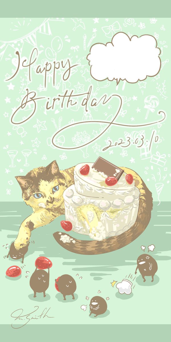 彼の誕生日なので、ご実家のもも(ねこ)とスタンプの黒いやつコラボしました。 アナログで描くのも楽しいけど、デジタルだと場所を取らないから今回は待ち受けにしてみた✨ #誕生日おめでとう #これからもよろしくお願いします #LINEスタンプ #イラスト #芸術の輪 #絵描きさんと繋がりたい #動物画