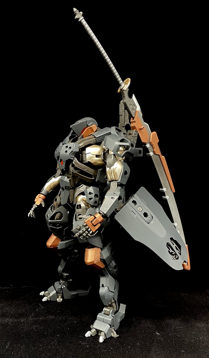 【ブイトール・フォルティス】完成しました!! ブイトールを騎士っぽく改造しました。 一部装甲部分は憧れていたグラデーション塗装に挑戦しました。 リプ欄にざっくりふわっとした設定と追加画像 #ヘキサギア #これが俺のブイトール
