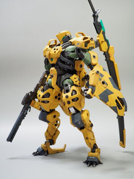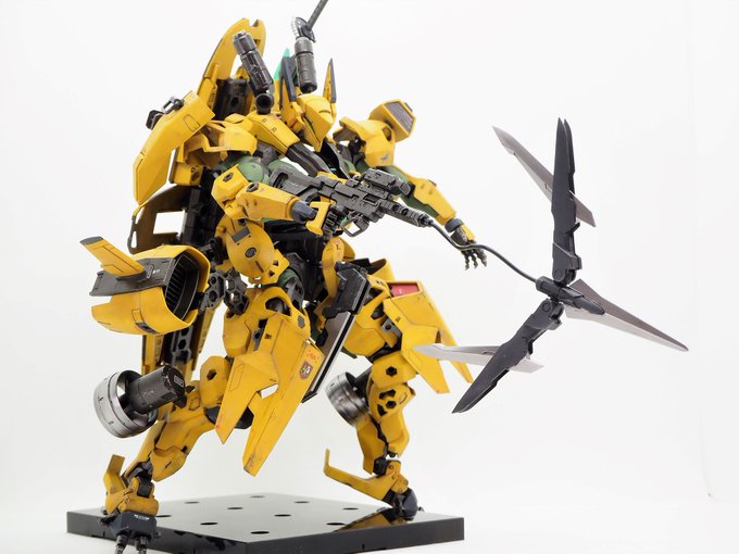 昨日、一旦これで終了、とか言ったな あれは嘘だ …結局またいじいじして胸元と頭の重心下げて、頭をブイトールのものに換装 正面から見ると、メットのうさ耳でうさちゃんブイトール…w #ヘキサギア #これが俺のブイトール #フレームアームズ・ガール #FAガール #メガミデバイス #MSG #コトブキヤ twitter.com/mobi_tan73/s…