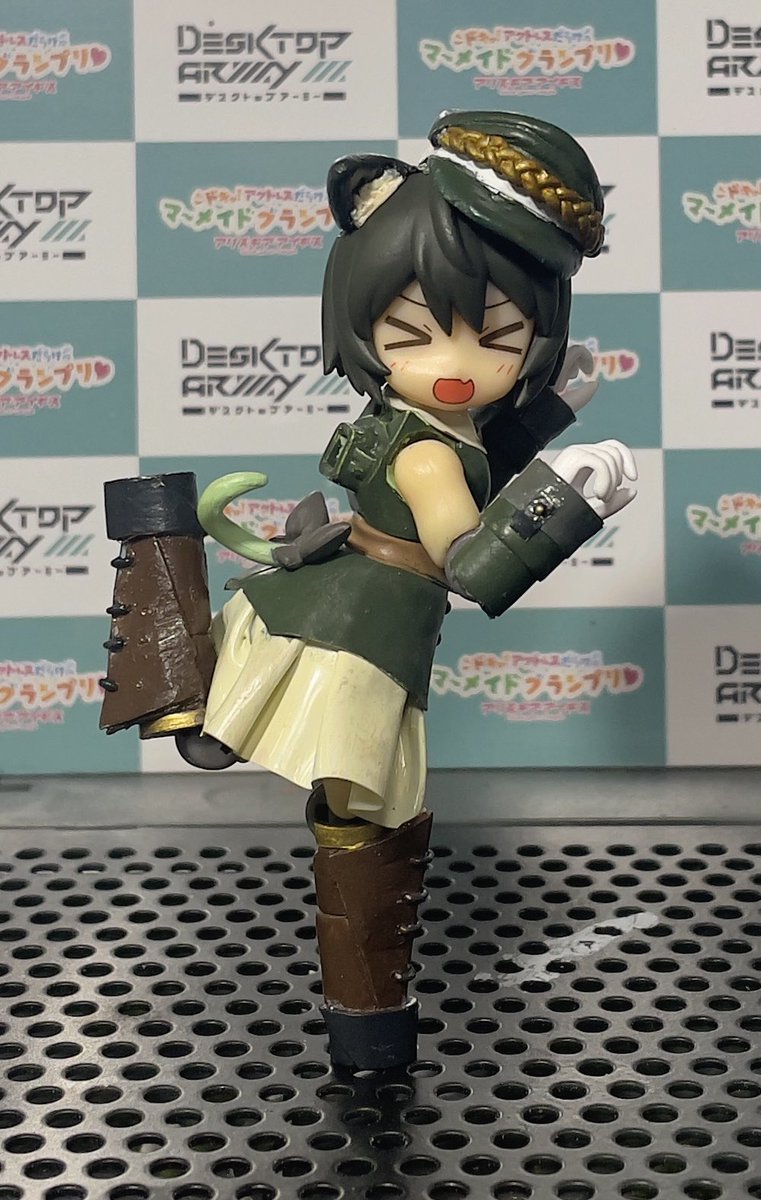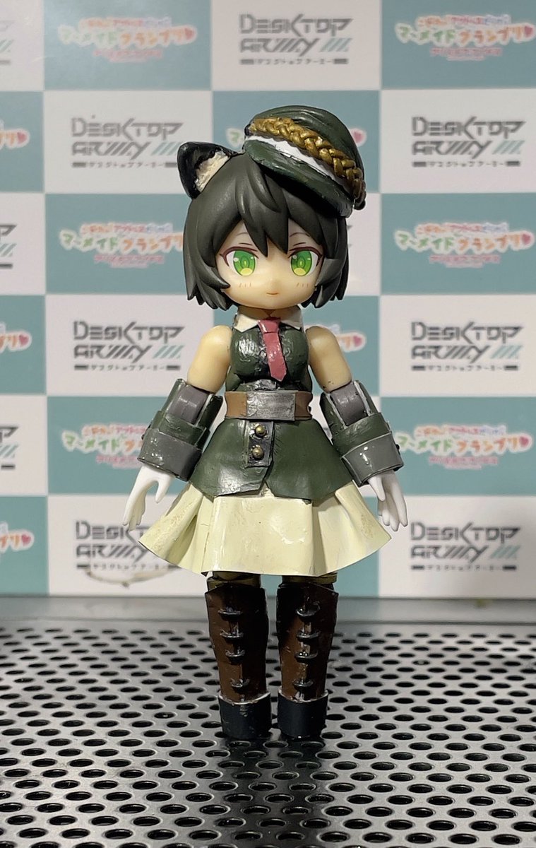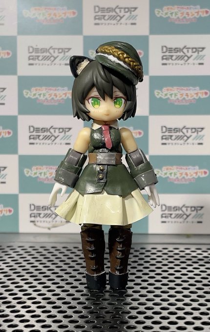 #デスクトップアーミー #これを見た人はシルフィーちゃんをTLに放出しよう 初DTA完成しました! シルフィーⅡ(ミリタリースタイル) 個体名:ヨモギ 頭部アンテナはよりネコ科動物を意識したプリミティブタイプを装備しているが、元々装備していたものと性能的な差は無いです。