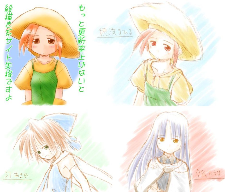 #これを見た人は歴代のアイコンイラストを貼る 変えようと思いつつ、今のホット猫を20年くらい使い続けていますので、歴代のアイコンなんてありません。代わりに歴代のHP管理キャラを貼っておきますw 2000→2001→2003(裏)→2004