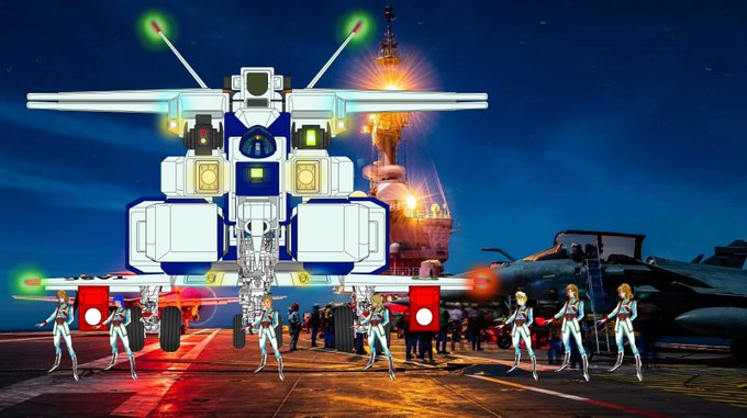 #これを見た人は真正面の画像を貼れ 超時空シリーズ 超時空騎団サザンクロス 空母 R91 #シャルル・ド・ゴール 上の7名の女性士官と可変戦闘機 「VFH-12 スーパーオーロラン」 #pixiv pixiv.net/artworks/10271… #deviantart deviantart.com/yui1107/art/R9… #超時空騎団サザンクロス #バルキリー