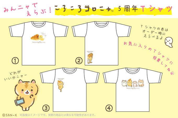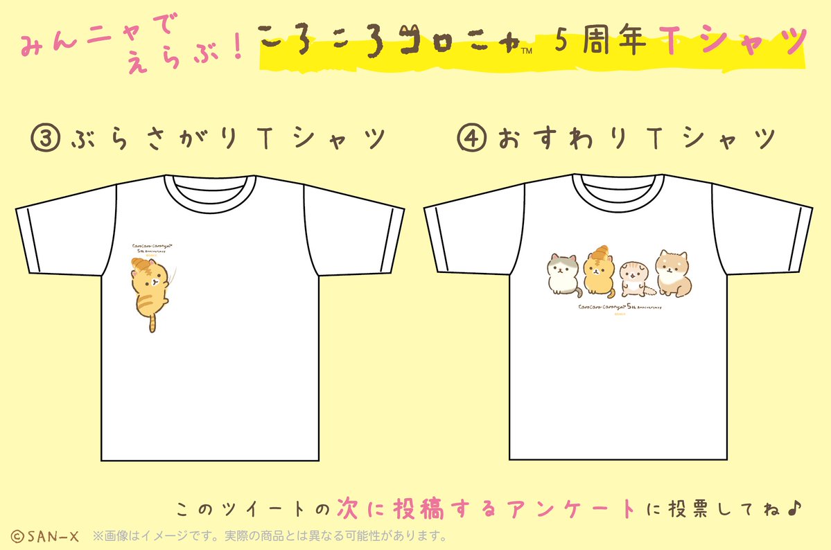 ころころコロニャ5周年をきねんして Tシャツつくりニャす🐱👕👚🎽 いちばんにんきのがらにするみたいだから ほしいTシャツおしえてくだニャい🐾 このつぎにとうこうする アンケートぽちっとしてね🐱🗳 #ころころコロニャ5周年