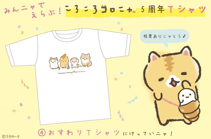 みんニャでえらぶ! #ころころコロニャ5周年 Tシャツ みニャさまごとうひょうありがとうございニャした🐱 1位の柄は…あれ? この柄、クリームがいないニャ💦 …クリームいれてもいいかニャ? twitter.com/corocorocorony…