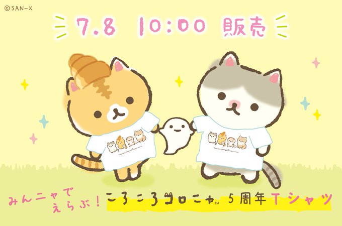 みんニャでえらぶ! #ころころコロニャ5周年 Tシャツ👕👚🎽 おまたせしニャした ついにみんニャでえらんだTシャツを 7/8の10時からネットショップで販売ニャ! コロニャとおそろいのTシャツ ゲットしてニャ👍 shop.san-x.co.jp/limit/2022ccc_…