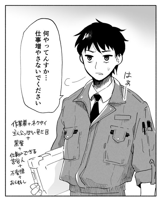 癖(へき)を詰めすぎてわからなくなってきた… 若干の恥ずかしさがあるので、これが私の萌えであってるんだと思います。作業着もっと流行れ #こんな見た目のキャラが好き(異性) #コルクラボマンガ専科