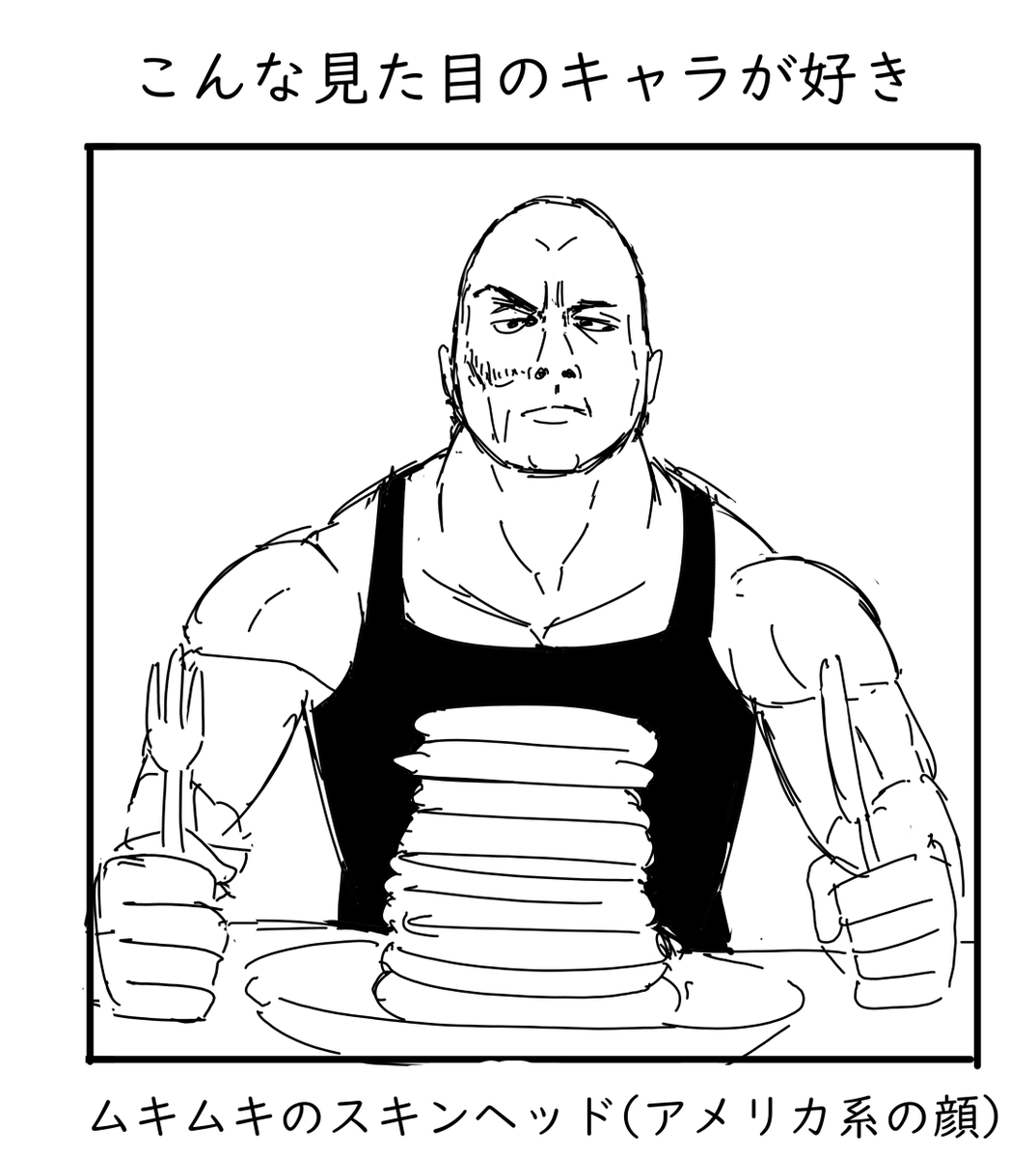 #こんな見た目のキャラが好き #コルクラボマンガ専科 萌え型だからか、自分とはかけ離れた見た目が好きです。 同性だと友達に欲しいという考えが働いて、スキンヘッドでムキムキなアメリカ人だと、明るくて優しい性格の人という勝手なイメージがあるから。 描いててもキャラが立つので楽しい!